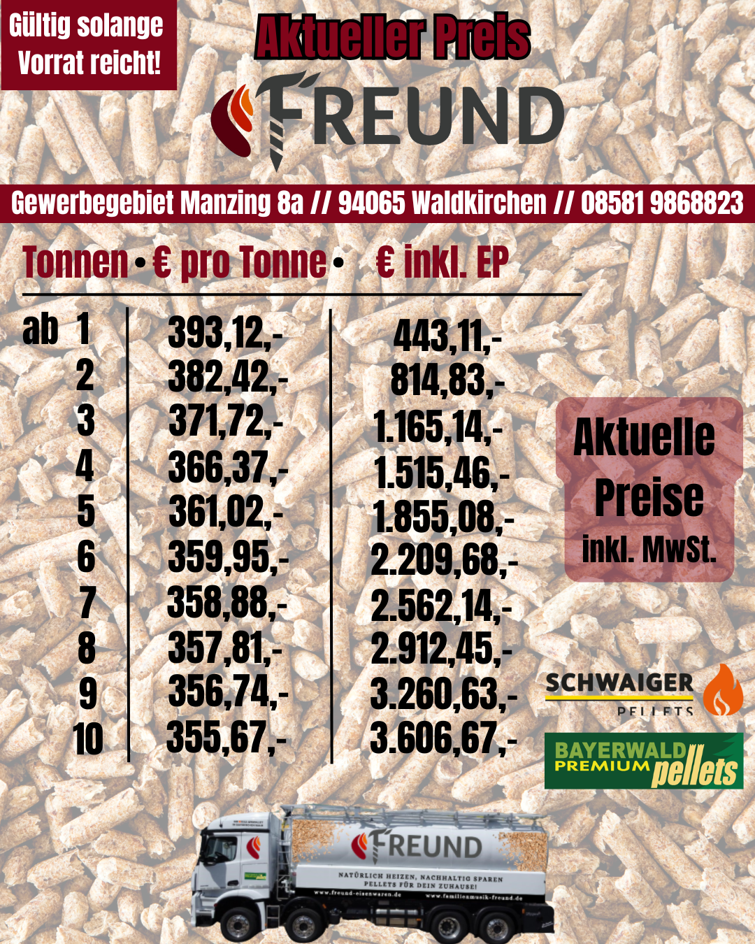 (Preis ab 1 Palette, ca. 960 kg) zzgl. Fracht und Palettenpfand
